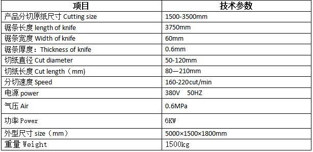 1. 主电动机采用变频器独立驱动; 2. 自动上纸,无需人工操作; 3.送料电机采用市精度伺服系统,保证成品质量; 4.设备根据原材料及成品长度自动算出所切割成品数量; 5. 自动磨刀装置,配金刚石砂轮,耐用高效; 6.切出的纸头纸尾自动分离;