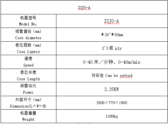 ZSJG-A型自动卷芯机是采用电磁铁配合杠杆原理技术,实现同步自动切断,具有高速、节能、收卷结实等特点,是生产纸芯的首选设备。